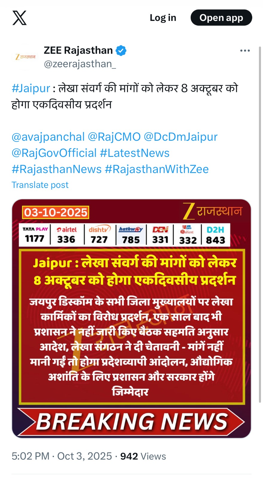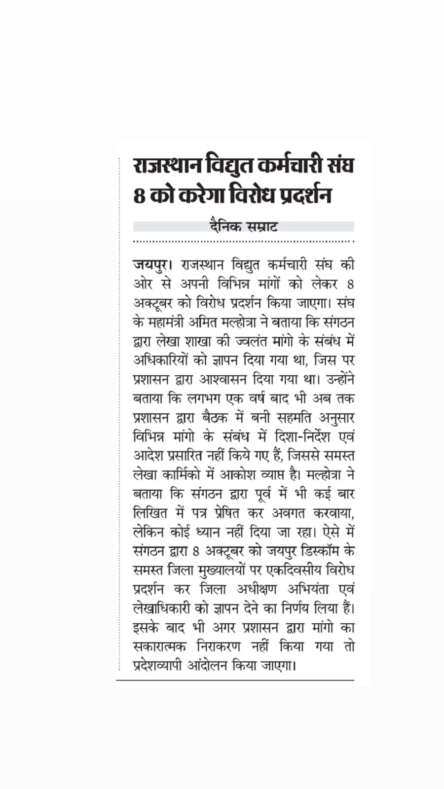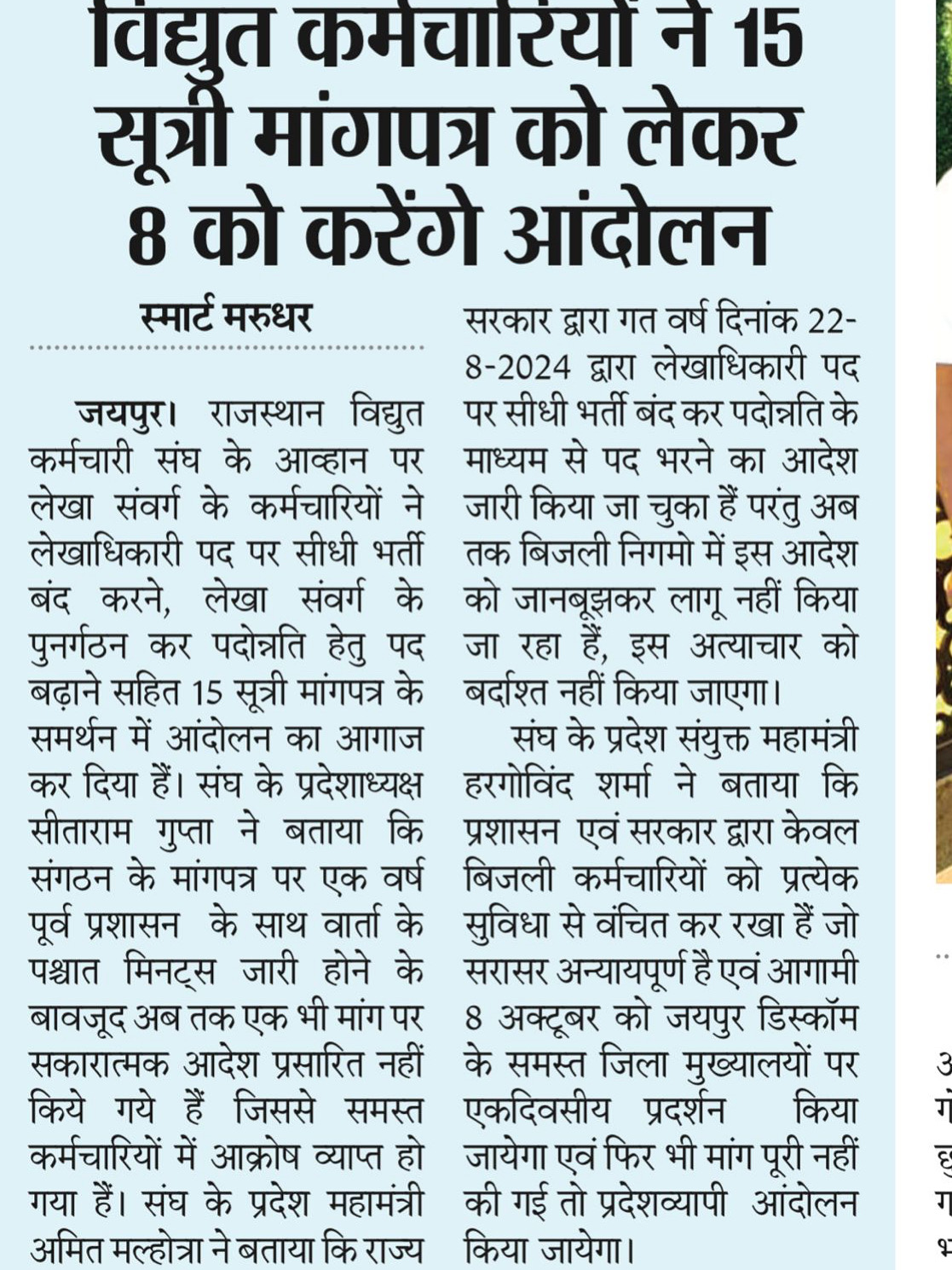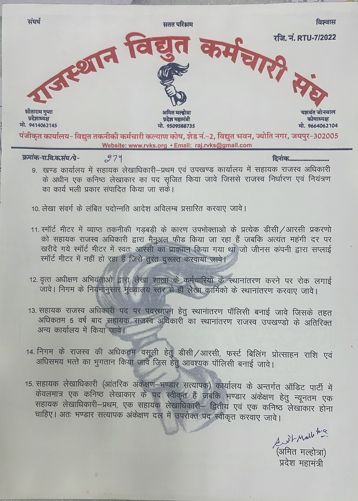 राजस्थान विद्युत कर्मचारी संघ के आव्हान पर लेखा संवर्ग की 15 सूत्रीय मांगपत्र के निराकरण हेतु 8 अक्टूबर 2025 को जिला मुख्यालयों पर प्रदर्शन की झलकियॉ
