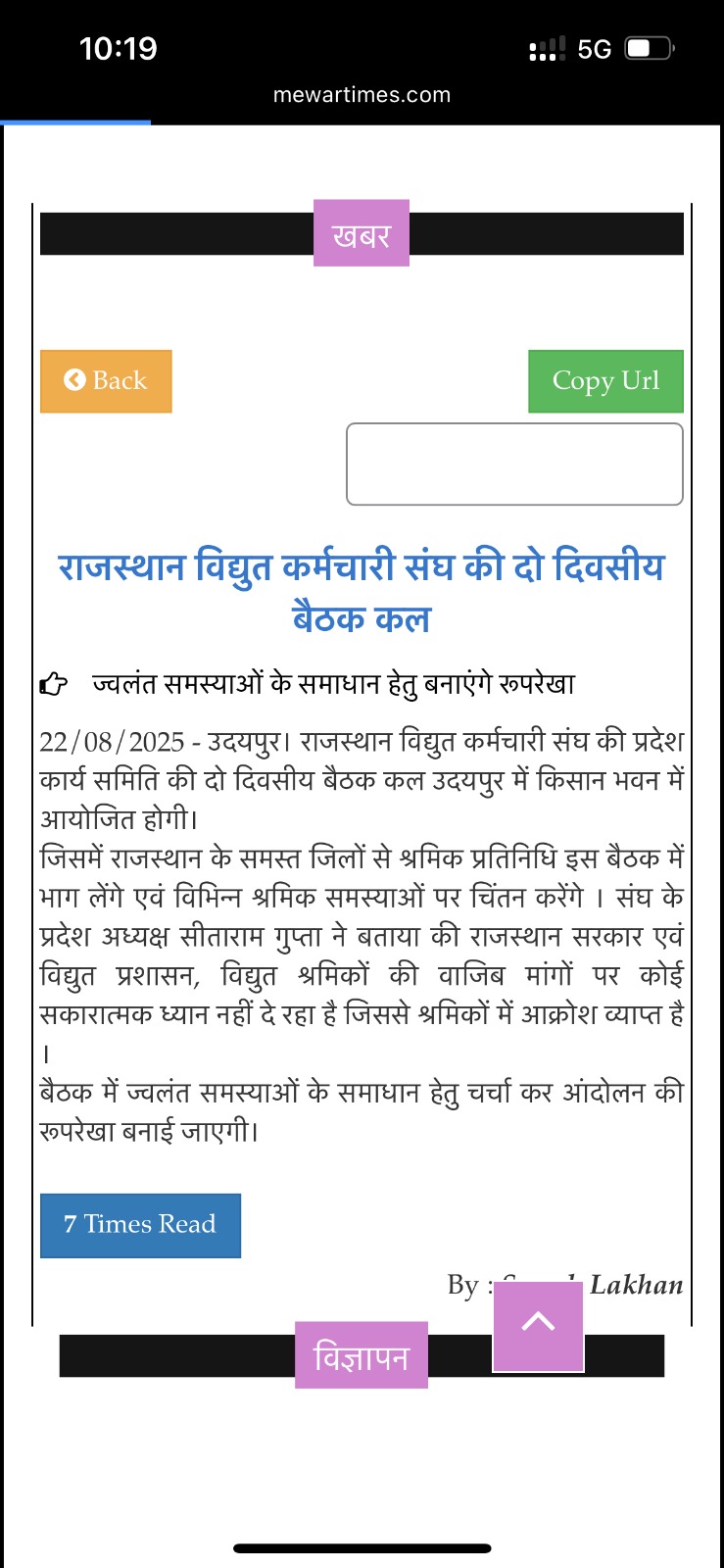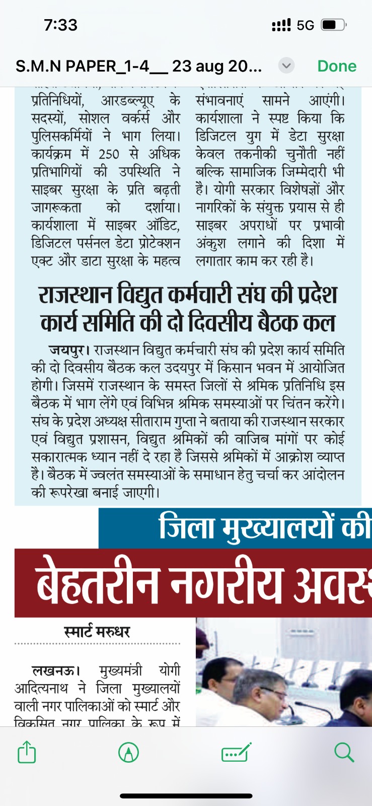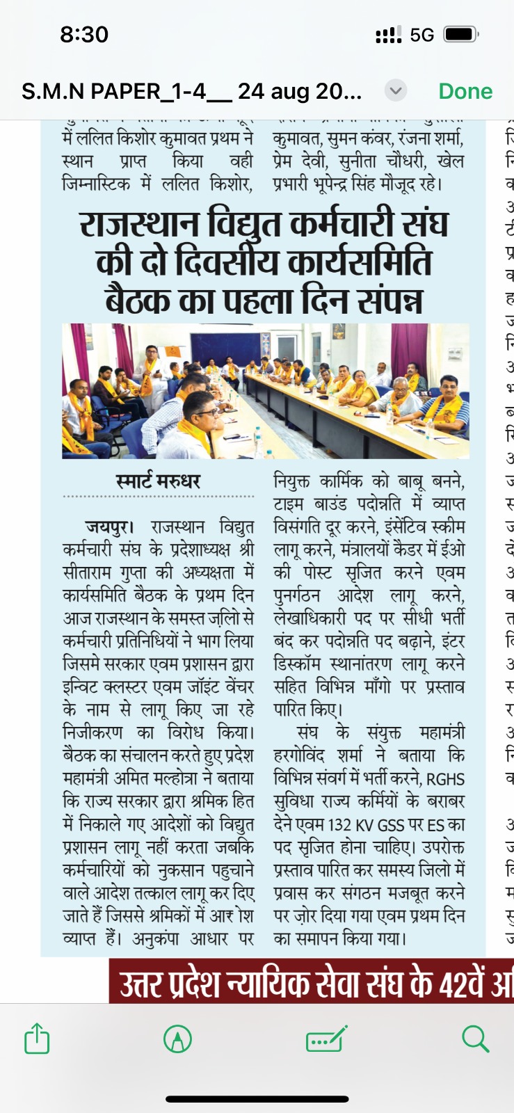 राजस्थान विद्युत कर्मचारी संघ की चतुर्थ कार्यसमिति बैठक उदयपुर में दिनांक 23 एवं 24 अगस्त 2025 को संपन्न